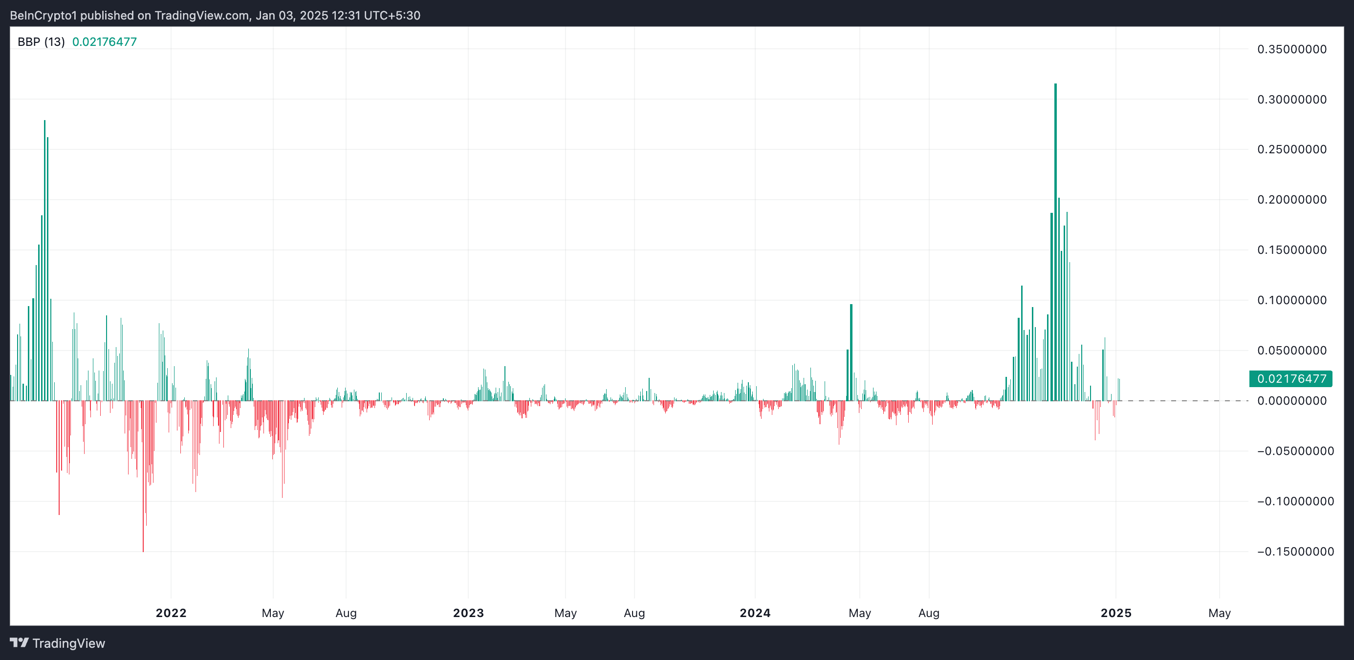 Положительные показатели технических индикаторов HBAR дополнительно подтверждают рост спроса. Например, значение индекса Elder-Ray указывает на усиление бычьего давления. На момент написания статьи оно составляет 0.021.