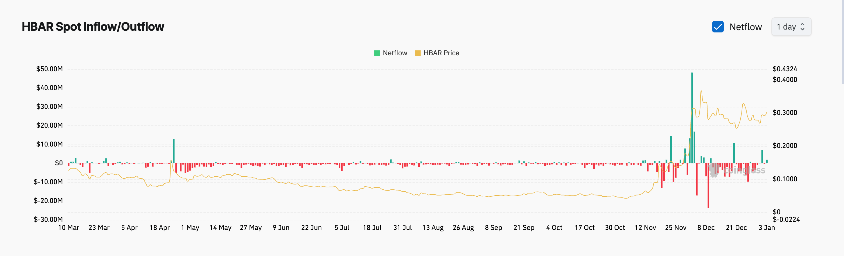 Инвестирование через спотовые рынки свидетельствует о прямой покупке актива по текущей рыночной цене. Это подчёркивает уверенность участников рынка в потенциале роста HBAR, так как увеличение притока обычно создаёт спрос, который оказывает давление на цену в сторону её повышения.