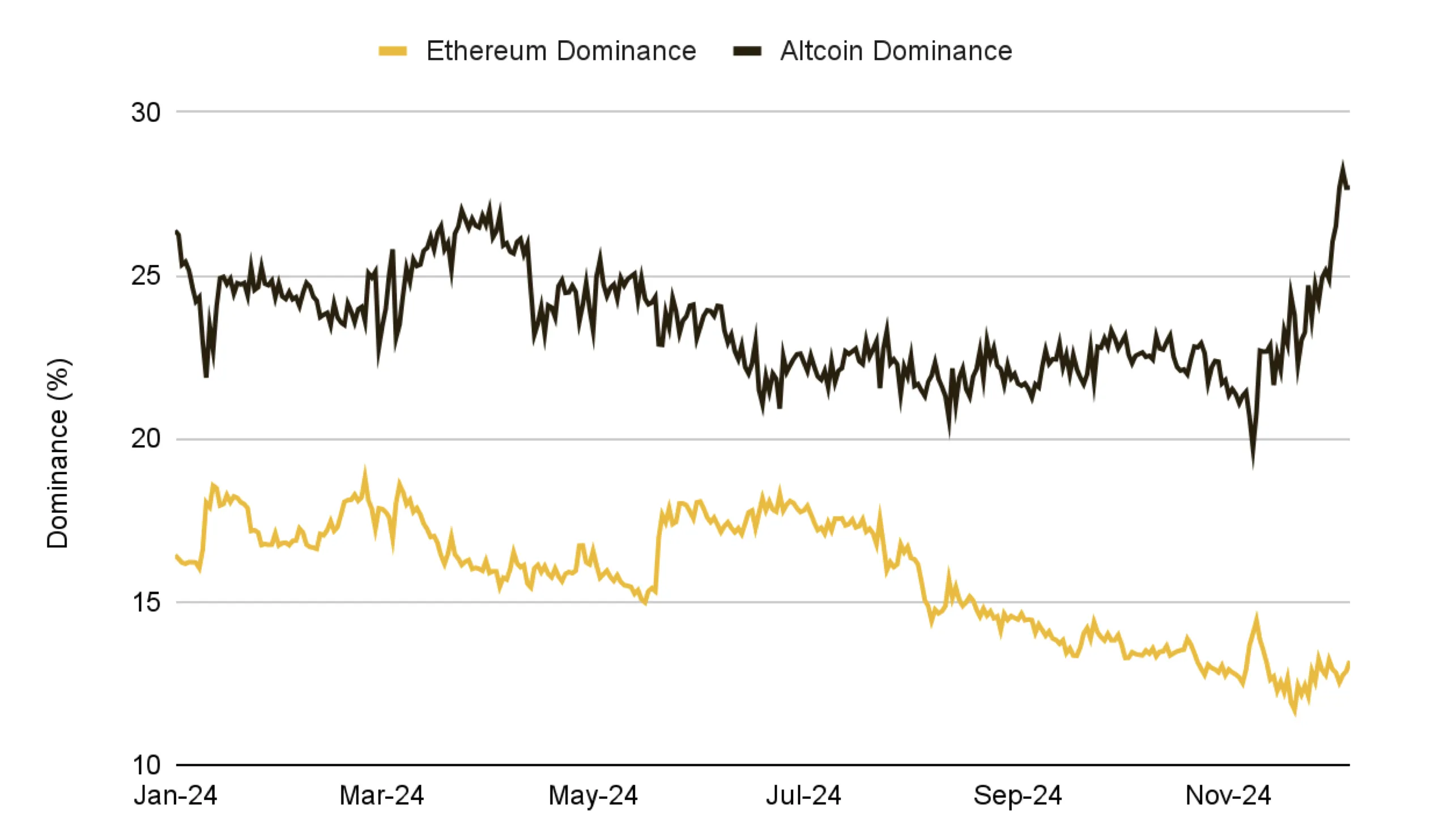 Однако, несмотря на положительные аспекты, снижение доли рынка ETH достигло 13,1%, что стало минимумом с 2021 года. Это отражает растущую конкуренцию в криптоэкосистеме и меняющийся Ethereum рынок. Binance Research указывает, что такая динамика удивительна на фоне общего роста интереса к рисковым активам.