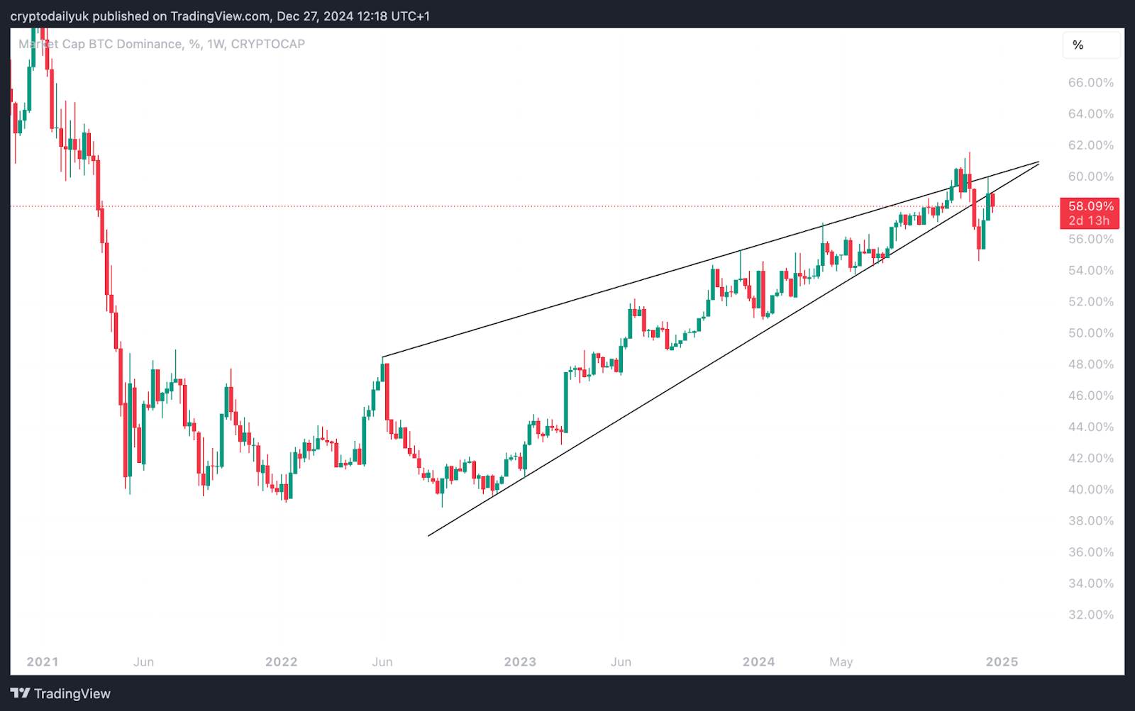 Инвесторы могут ожидать дальнейшего снижения доминации Биткойна ниже 54,6% с целевым диапазоном от 48% до 40%. Это откроет путь для альткоинов к началу роста.