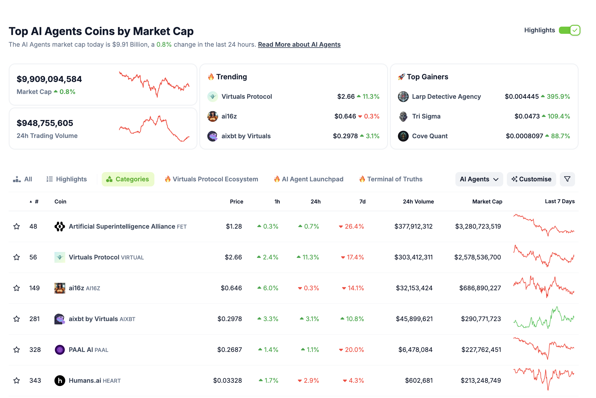 Несмотря на общую турбулентность, сектор AI-агентов продолжает расти и уже достиг рыночной капитализации в $10 млрд. За счет инвестиции в криптовалюту, ориентированную на искусственный интеллект, этот сектор стал одним из самых быстрорастущих за последние недели. Основные факторы роста включают в себя увеличение спроса на AI-технологии в различных отраслях и расширяющиеся возможности их совместного использования в децентрализованных экосистемах.