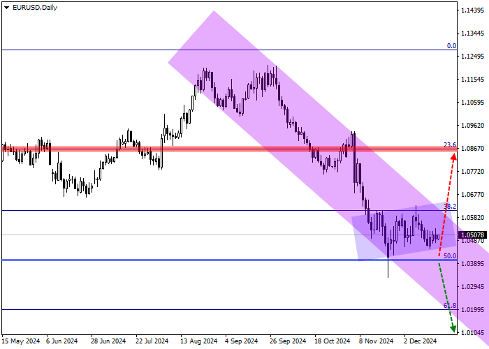 У исторического минимума от 25 сентября 2022 года на отметке 0.9530 располагается целевая зона, в случае достижения которой следует фиксировать прибыль по открытым позициям. Уровень входа в сделки на продажу располагается на отметке 1.0400, совпадающей с уровнем промежуточной коррекции 50% по Фибоначчи. В случае закрепления ниже неё коррекция продолжится и позиции на продажу могут быть реализованы.