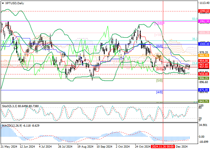 Тем не менее, текущее укрепление торгового инструмента может оказаться временным из-за усиления влияния монетарных факторов после окончания праздничного периода. Эксперты опасаются, что возвращение в Белый дом администрации Дональда Трампа приведет к значительному росту инфляционного давления в экономике США на фоне серьёзного снижения налогов и повышения торговых тарифов на 10,0–20,0%. В ноябре индекс потребительских цен уже ускорился до 2,7%, а предложенные избранным президентом экономические меры только усилят эту динамику, что может привести к реакции со стороны ФРС США. На декабрьском заседании регулятора чиновники уже сократили число коррекций процентных ставок в следующем году до двух, однако наиболее негативные прогнозы аналитиков подразумевают, что при необходимости стоимость заимствований и вовсе может быть повышена. В этом случае американская валюта укрепит свои позиции по отношению к альтернативным активам, а пара XPT/USD продолжит нисходящую динамику в среднесрочной перспективе.