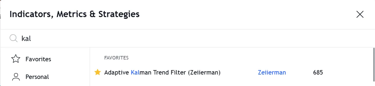 - Найдите «Adaptive Kalman Trend Filter by Zyerman» и добавьте к графику.