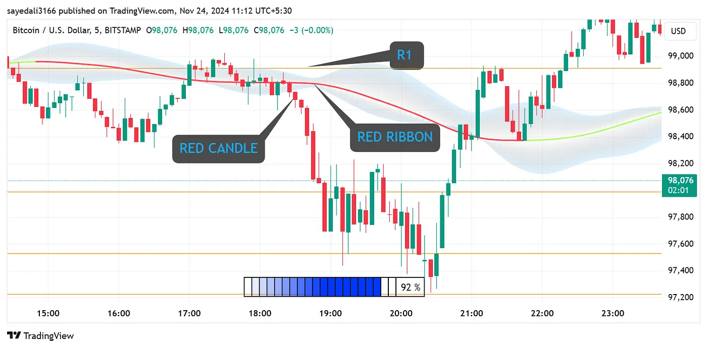 Адаптивный тренд-фильтр Kalman (Adaptive Kalman Trend Filter) предназначен для отсеивания рыночного шума, автоматически подстраиваясь под различные уровни волатильности. Он визуально указывает «зелёные» зоны при восходящем тренде и «красные» — при нисходящем, что облегчает определение основной тенденции. Camarilla Pivot Points помогают выявлять важные уровни поддержки/сопротивления (R1–R4, S1–S4), где цена может развернуться или продолжить движение.