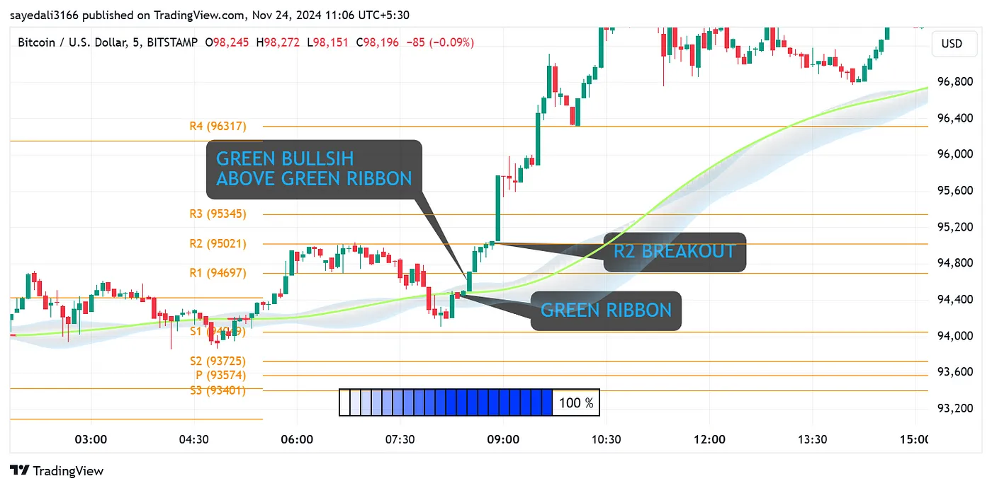 - Уровни Camarilla: следите, подходит ли цена к R1, R2 и т. д. с усиленным объёмом и формирует бычью свечу.